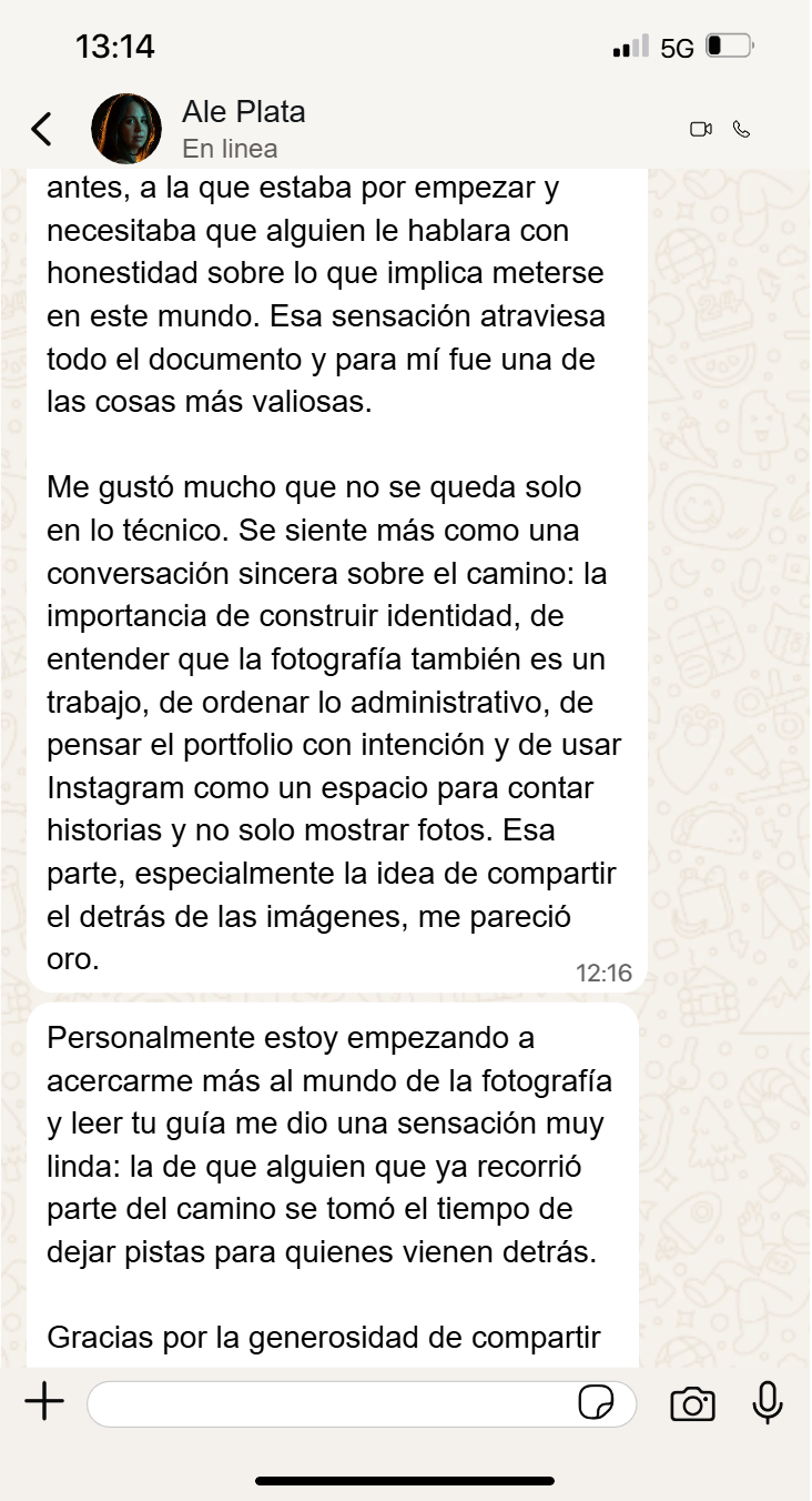 No te quedás solo con el contenido. Resuelve dudas reales, comparte tu proceso y aprende junto a otros fotógrafos que están en el mismo camino.